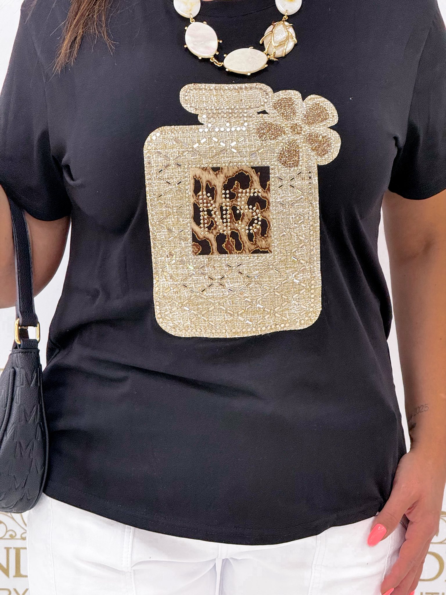 Kövekkel díszített parfüm mintázatú póló