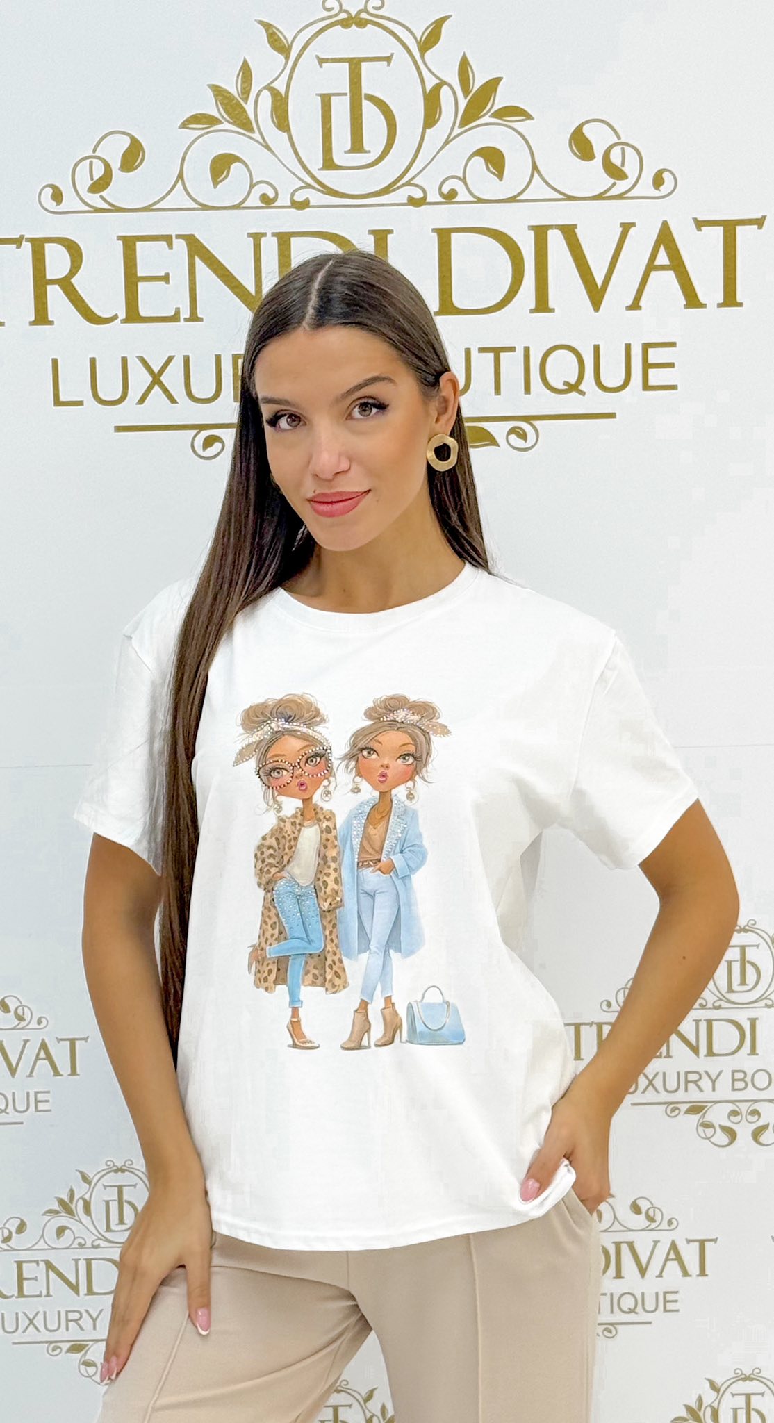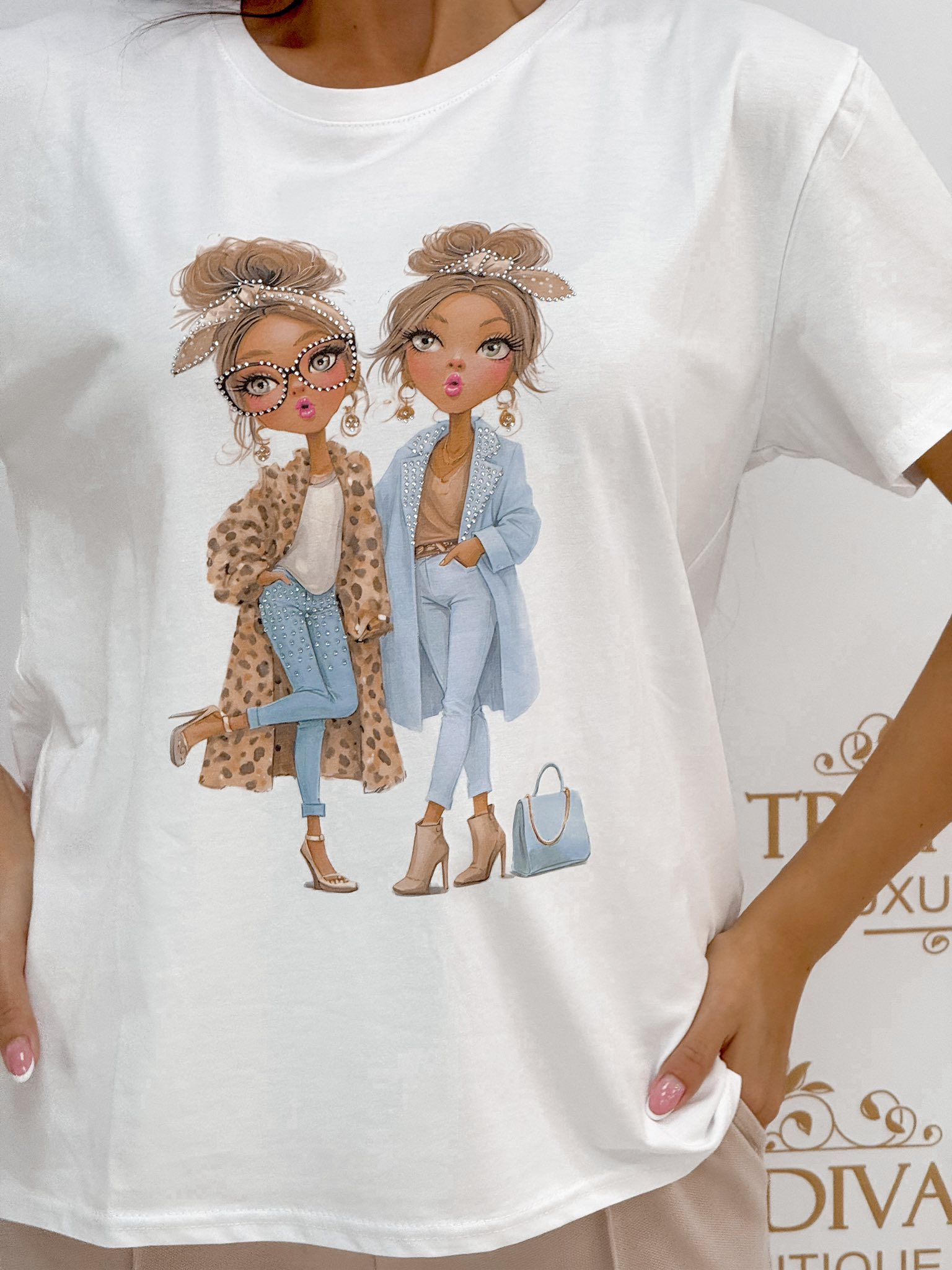 Kövekkel díszített trendi női mintázatú póló
