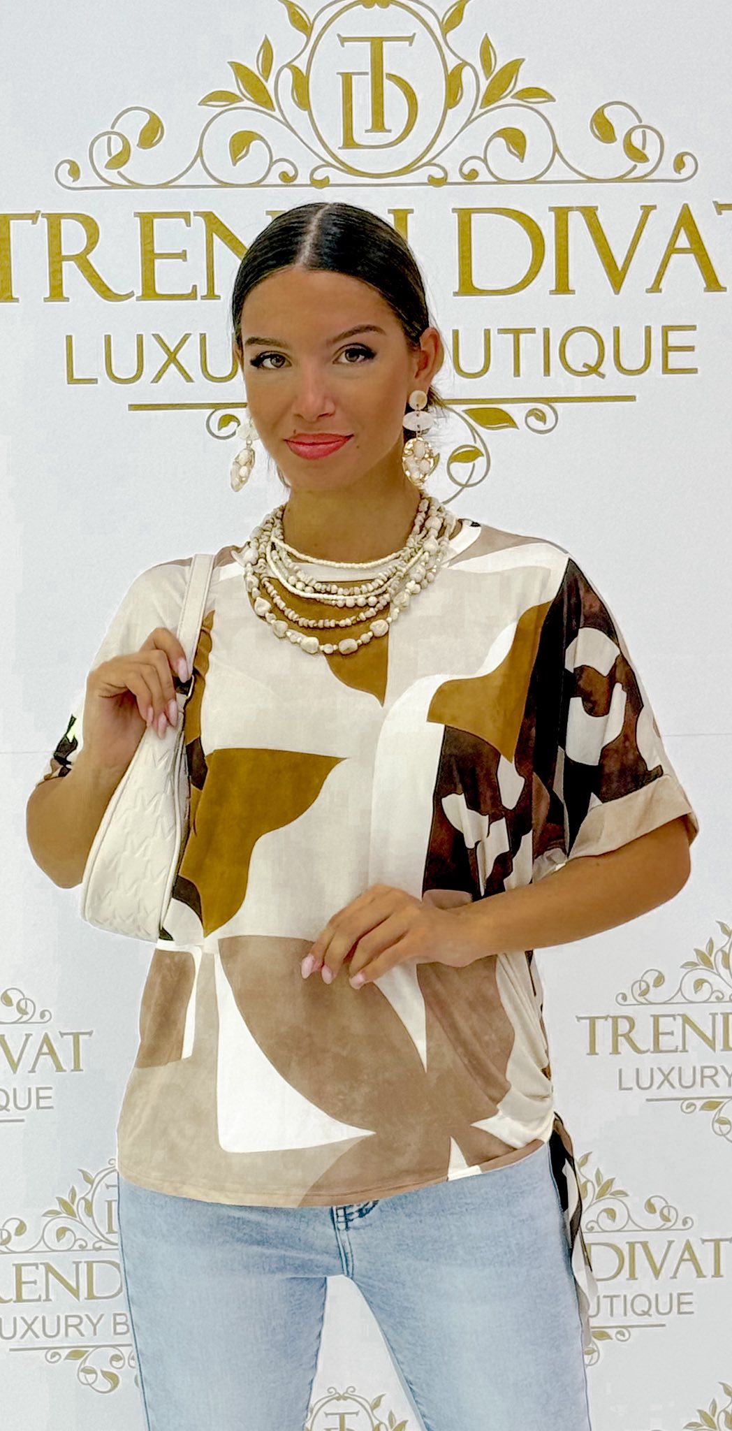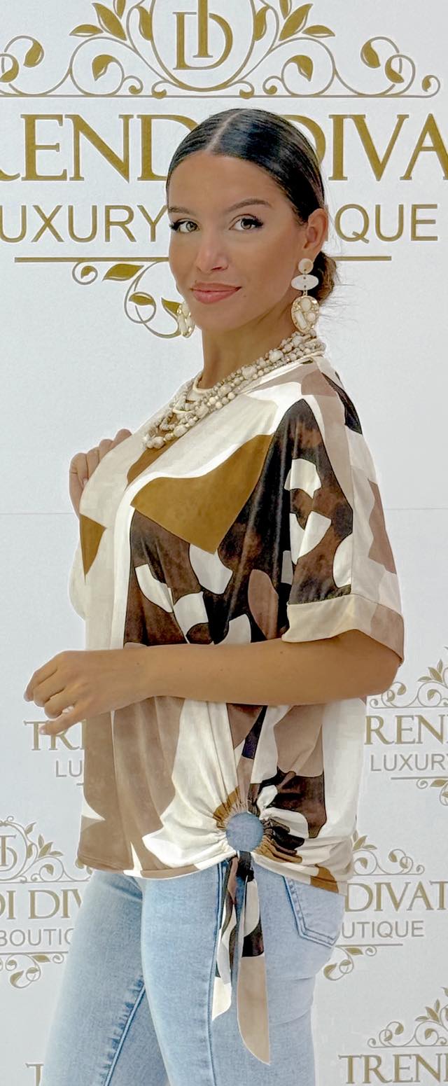 Lezser, absztrakt mintás női felső, oldalsó megkötővel