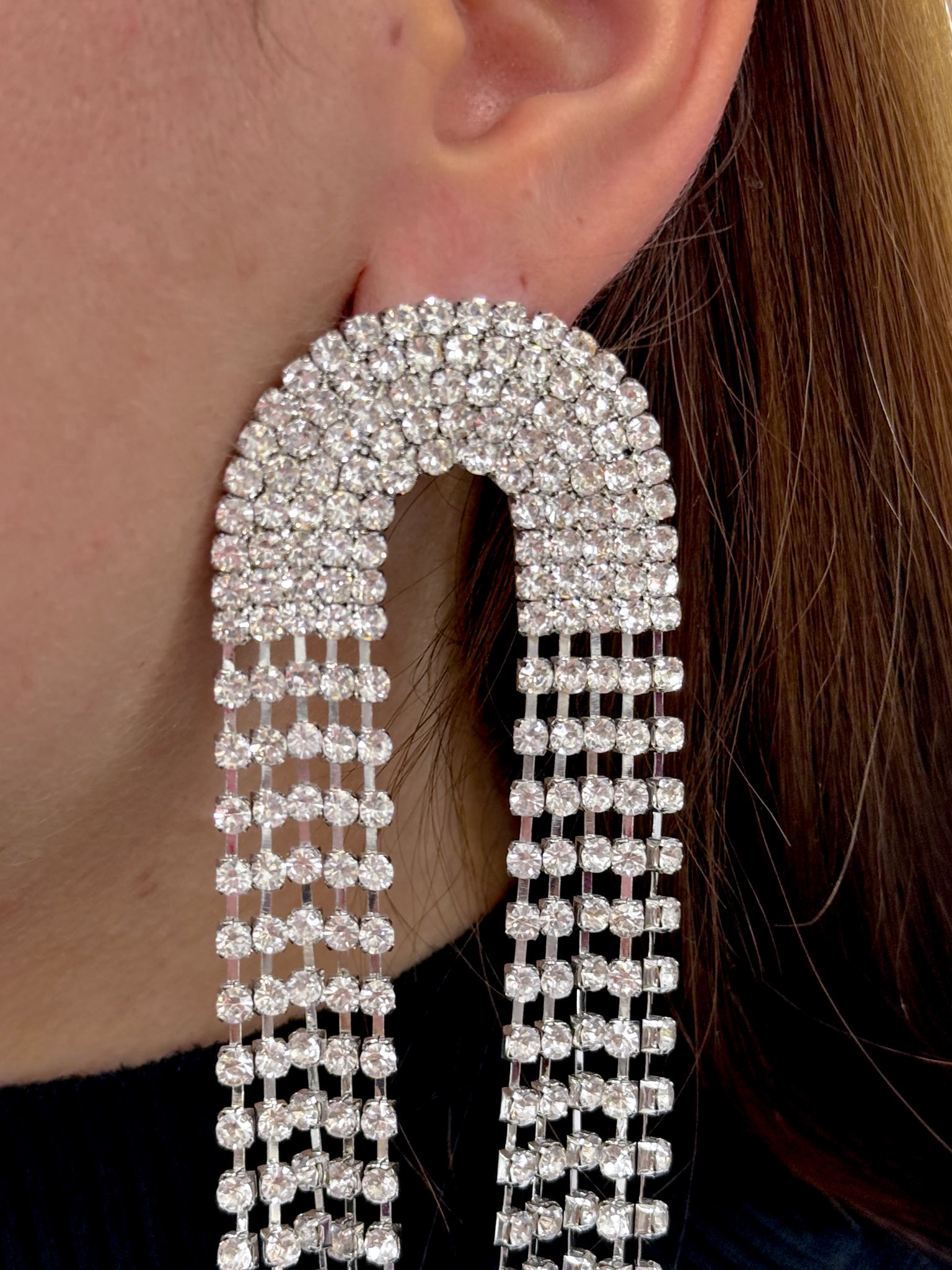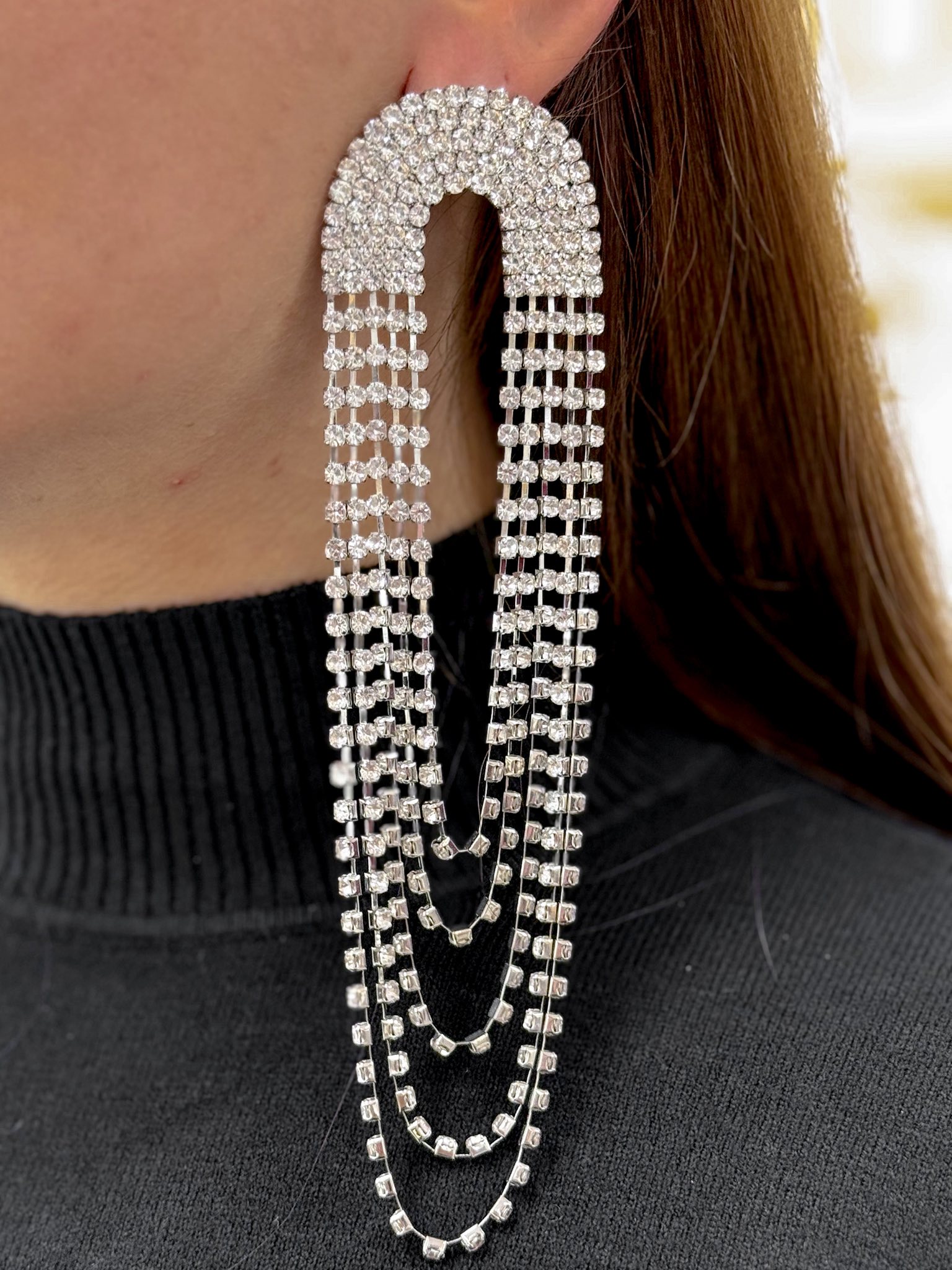 Ovális formájú, kövekkel díszített lógós fülbevaló