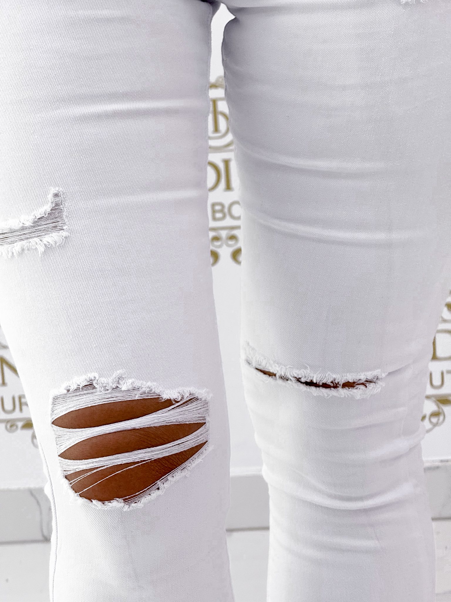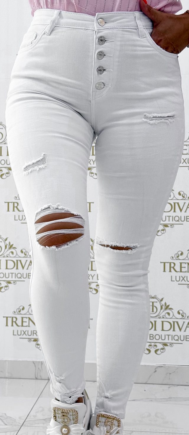 Sok gombos, tépett, fehér színű farmernadrág “2608-B”