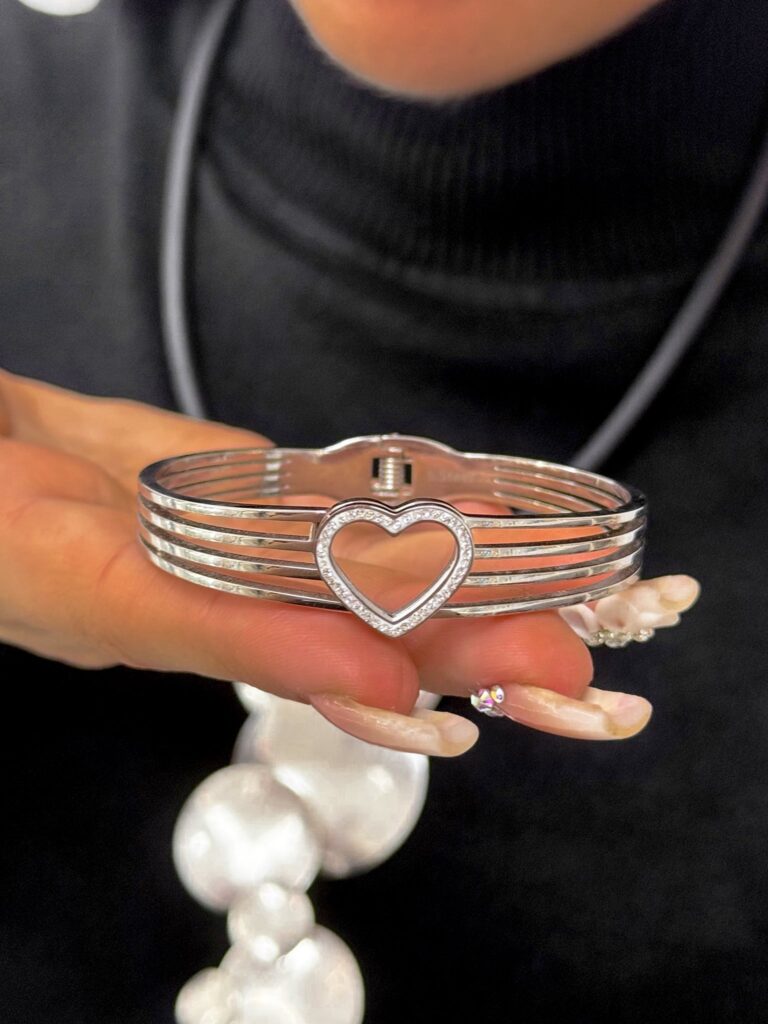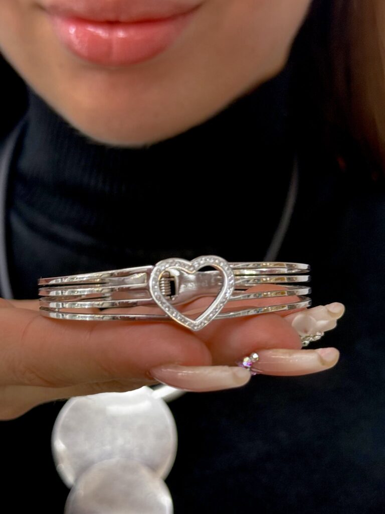 Szívecskés ezüst színű karperec