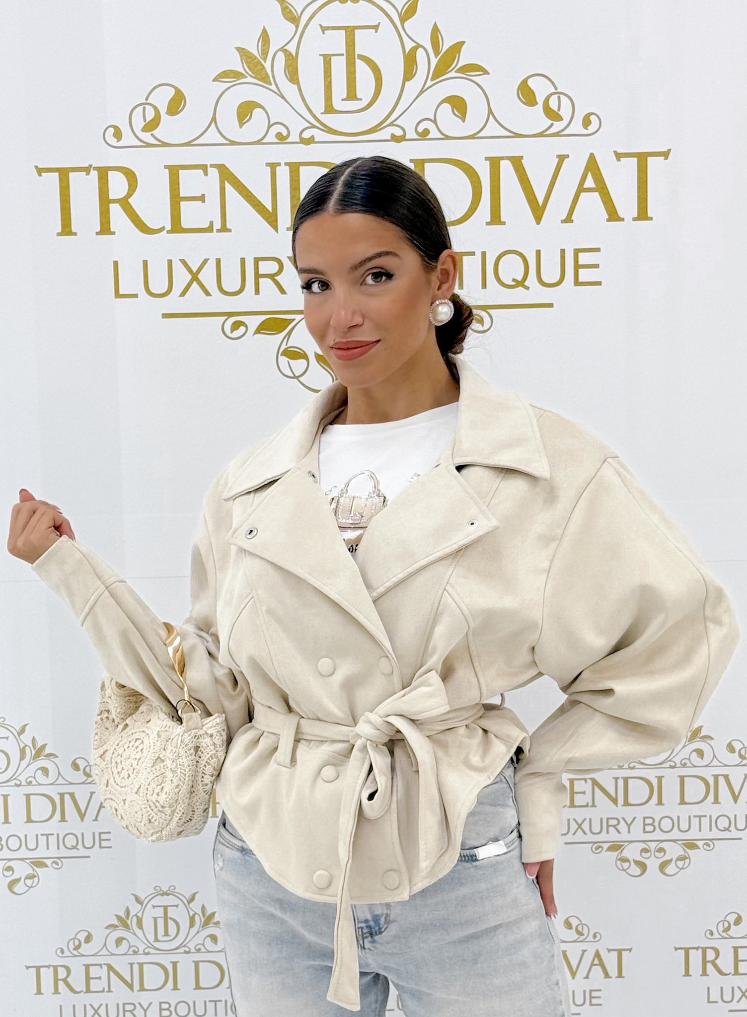 „T-fazonú, galléros, patentos, velúr anyagú kis kabát, megkötős övvel” értékelése elsőként
